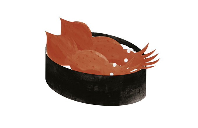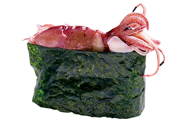 These tiny squid glow bluish-white under water. Spring is their season, with Toyama Bay being Japan’s most famous source. Enjoy boiled (as pictured), as sashimi, or soy-marinated as sushi neta.