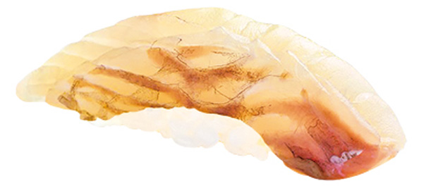 While traditionally simmered according to local Toyama cuisine, this shellfish also shines as sushi neta. Its appealing and firm, chewy texture is at its peak in summer.