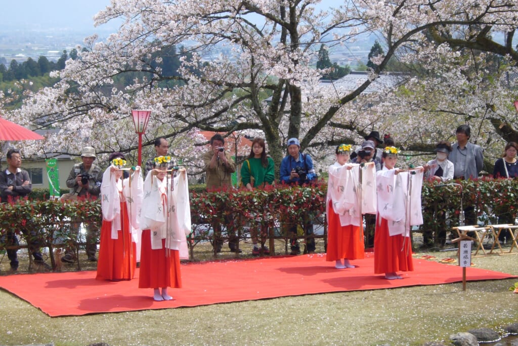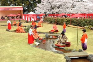 桜がほころぶ春の婦中・各願寺で行われる「ふちゅう曲水の宴」。