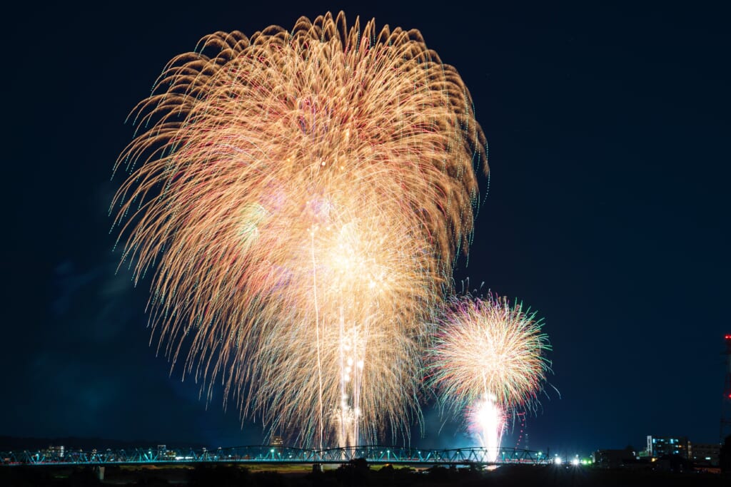市街地からすぐの有沢橋下流で行われる、富山県随一の花火大会です。