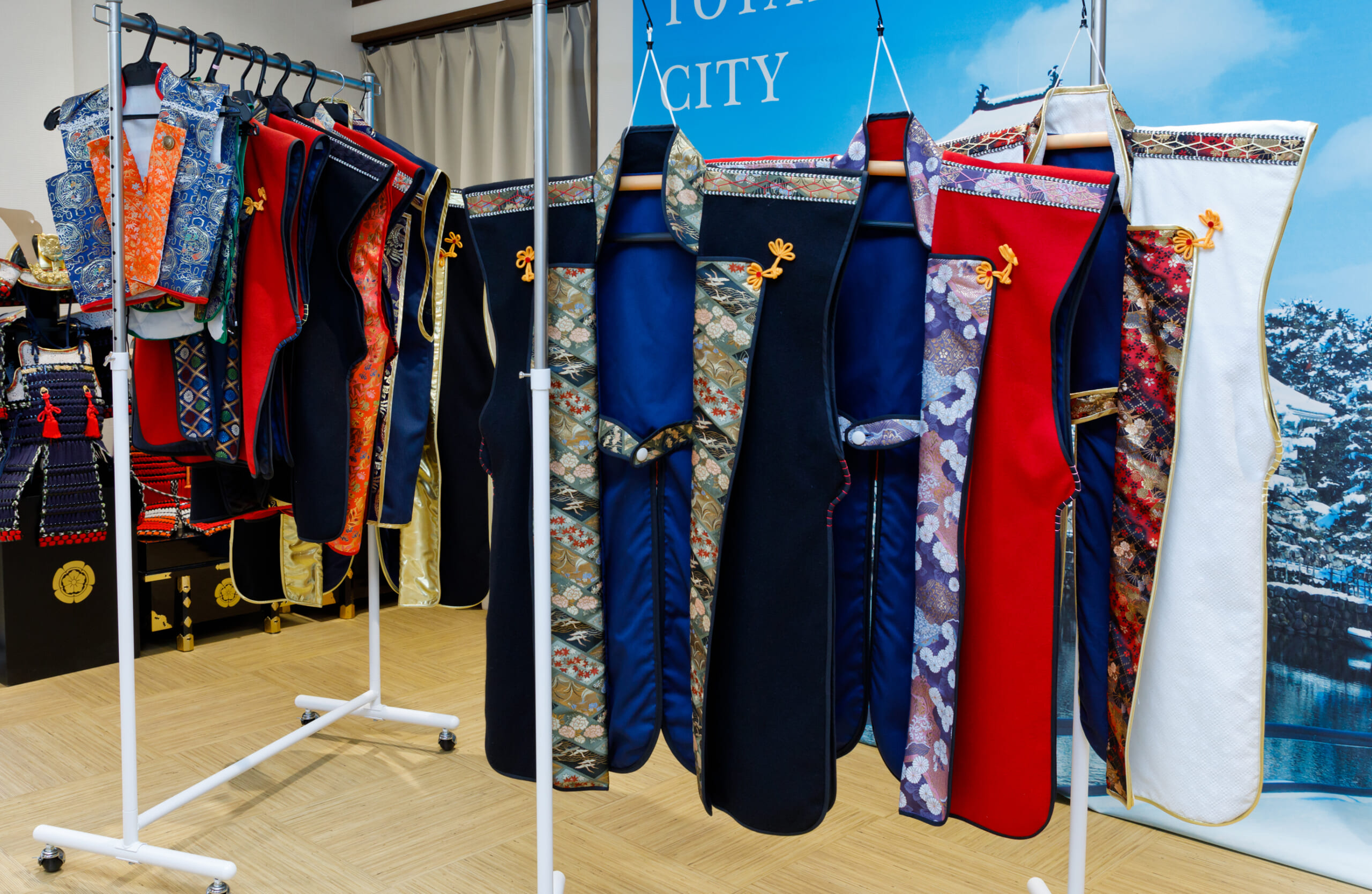 体力や体格に合わせて、複数の甲冑の中から好みの衣装を選べるのが魅力です。