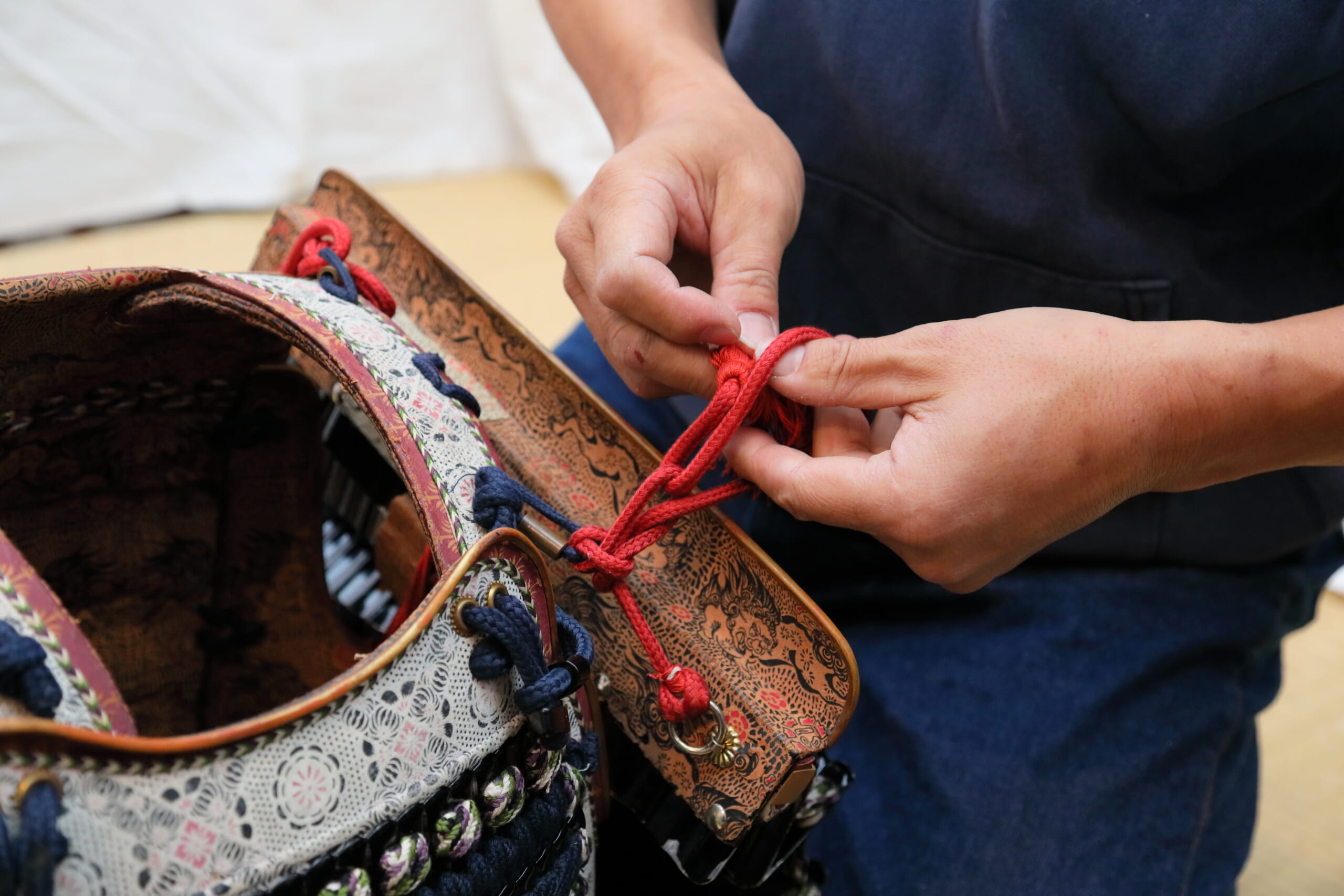 本格甲冑の着付け風景