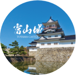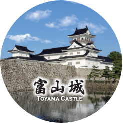 城名を力強く配し、歴代城主の歴史を感じさせる意匠により、富山城の歩みと格式を表現しています。
