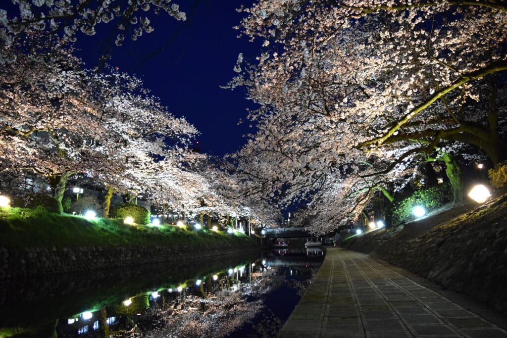 松川べりの夜桜ライトアップ