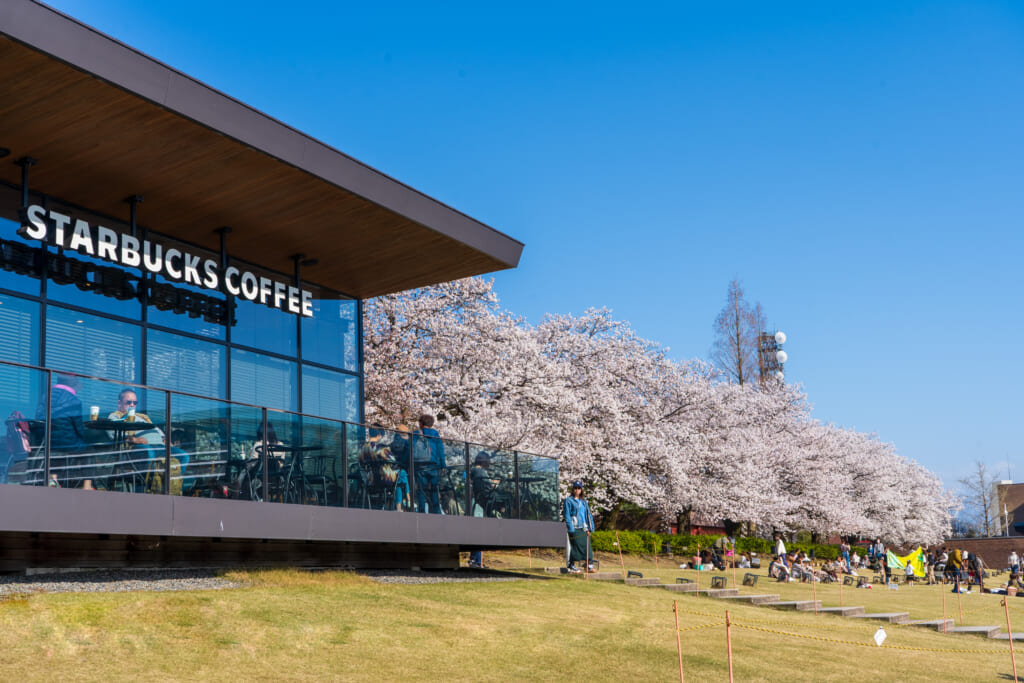 桜並木に映える世界一美しいスターバックス