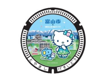 富山市と「ハローキティ」のコラボレーション企画のデザインマンホール。