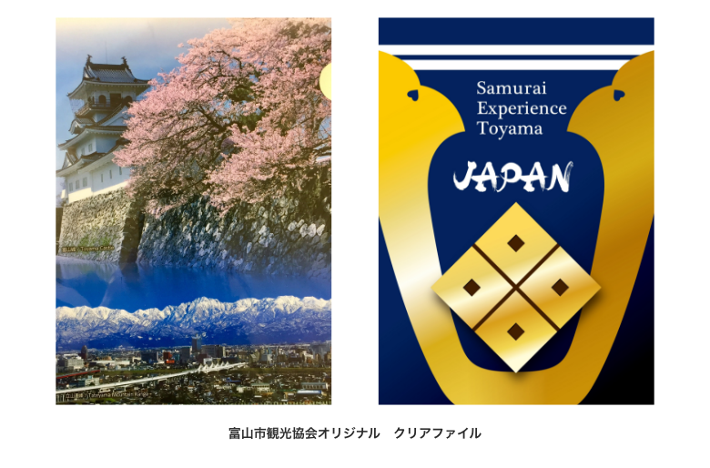 富山市まちなか観光案内所では、オリジナルグッズの缶バッジ、クリアファイル等を販売しております。