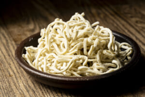 自家製の太ちぢれ麺がスープを抱き込み、粗切りのネギとチャーシューもよく合います。