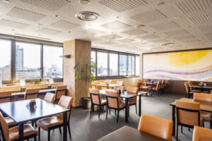 富山県民会館8階にあるレストラン。窓際の席からは富山城やまちなかを望み、天候に恵まれれば立山連峰まで見渡せる、開放感あふれる眺望が魅力です。