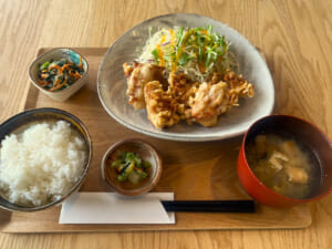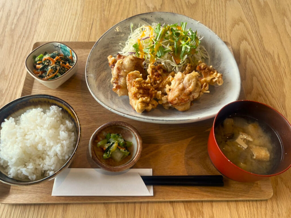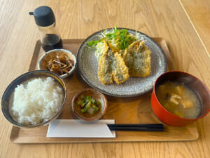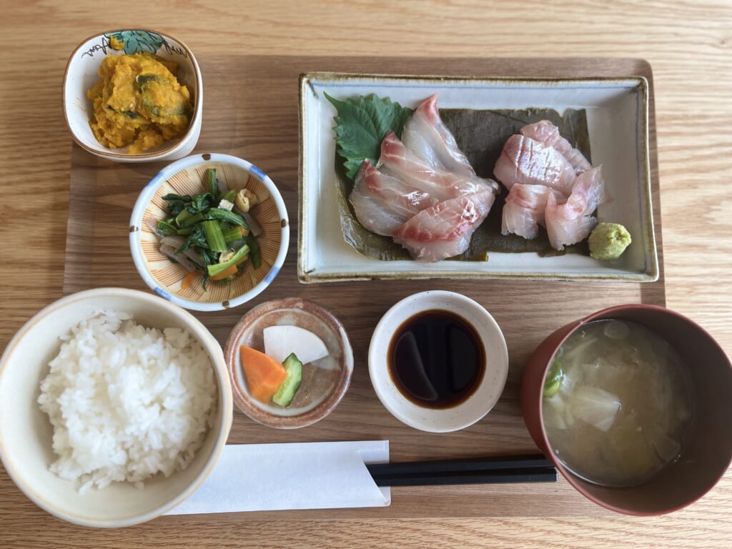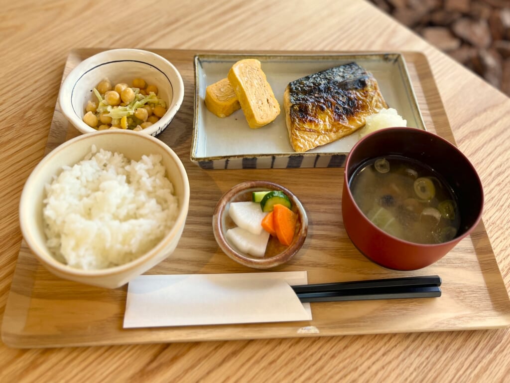 地元の野菜やお米など“地場もん”を軸に、朝は軽やかに整う朝食、昼は満足感のある定食を用意。出勤前の一杯にも、観光の合間のランチにも、気負わず入りやすい空気感が魅力です。