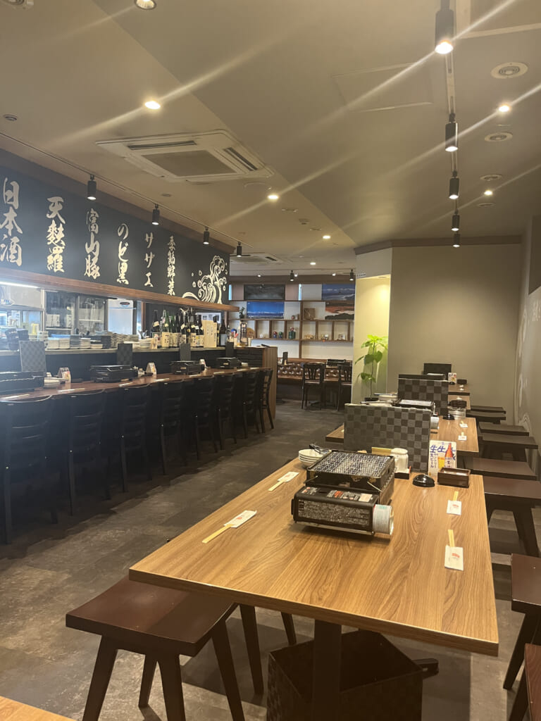 富山湾の新鮮な魚介を、目の前で焼き上げる浜焼きが名物です。