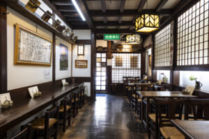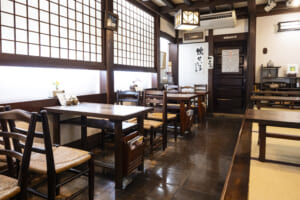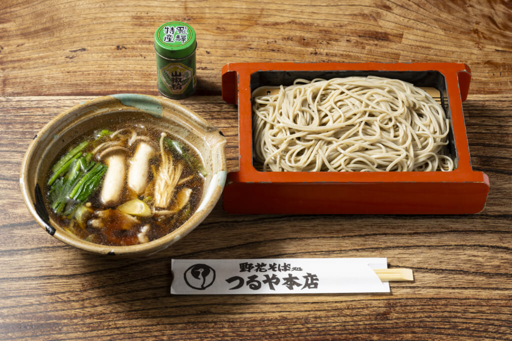 季節によって内容が変わる具だくさんの「山菜そば」、温かいつけ汁で冷たい蕎麦を味わう「鴨せいろ」などが人気。家族3代で通う常連客も多く、店内は老舗ならではのあたたかさに包まれています。