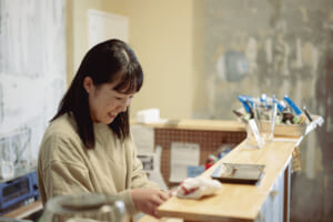 天井が高く開放感のある店内は、立ち飲みでも心地よく、女性ひとりでもふらっと立ち寄りやすい雰囲気。