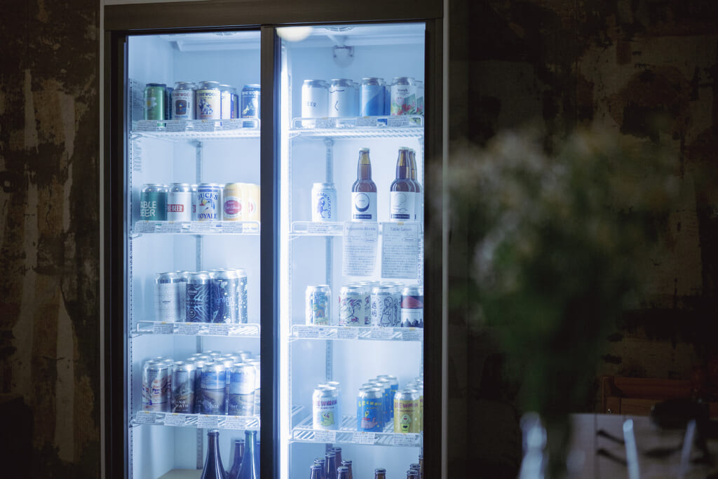 『A CORNER SHOP』には、国内外から選ばれた個性豊かなクラフトビールが並び、タップビールのほか、缶ビールも充実しています。