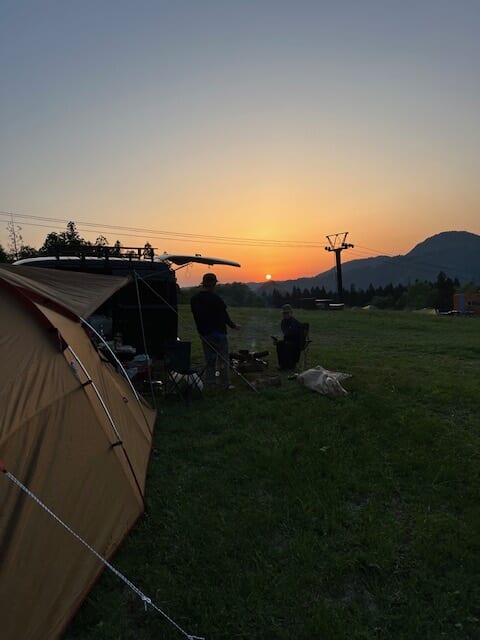 キャンプエリアは、車の乗り入れOK、トイレや炊事場完備。近くには温泉施設もあり、ペット同伴も可能です。「整いすぎていない」からこそ、自由で心地よいアウトドア時間が流れます。