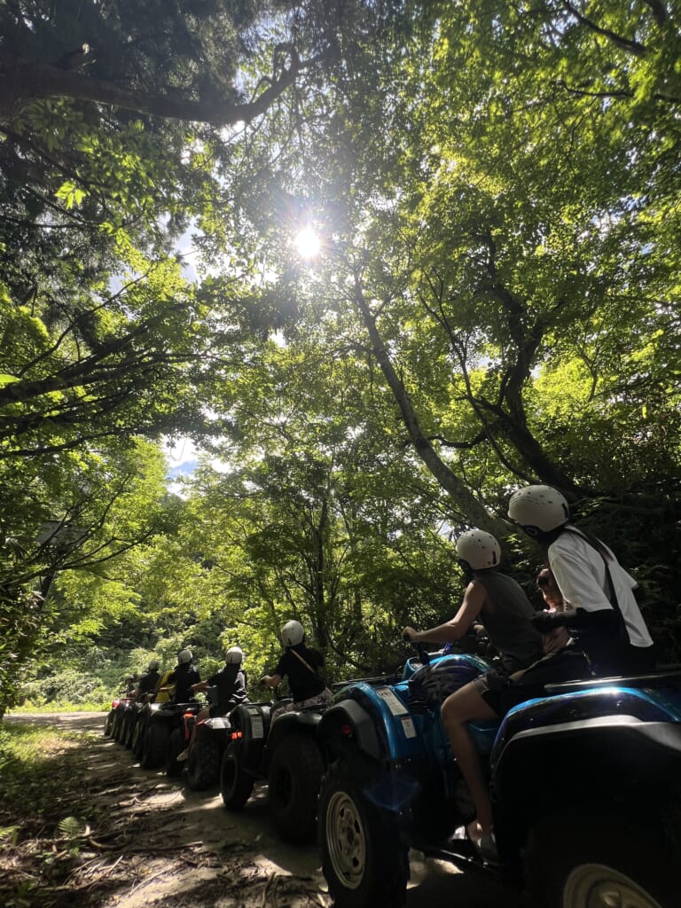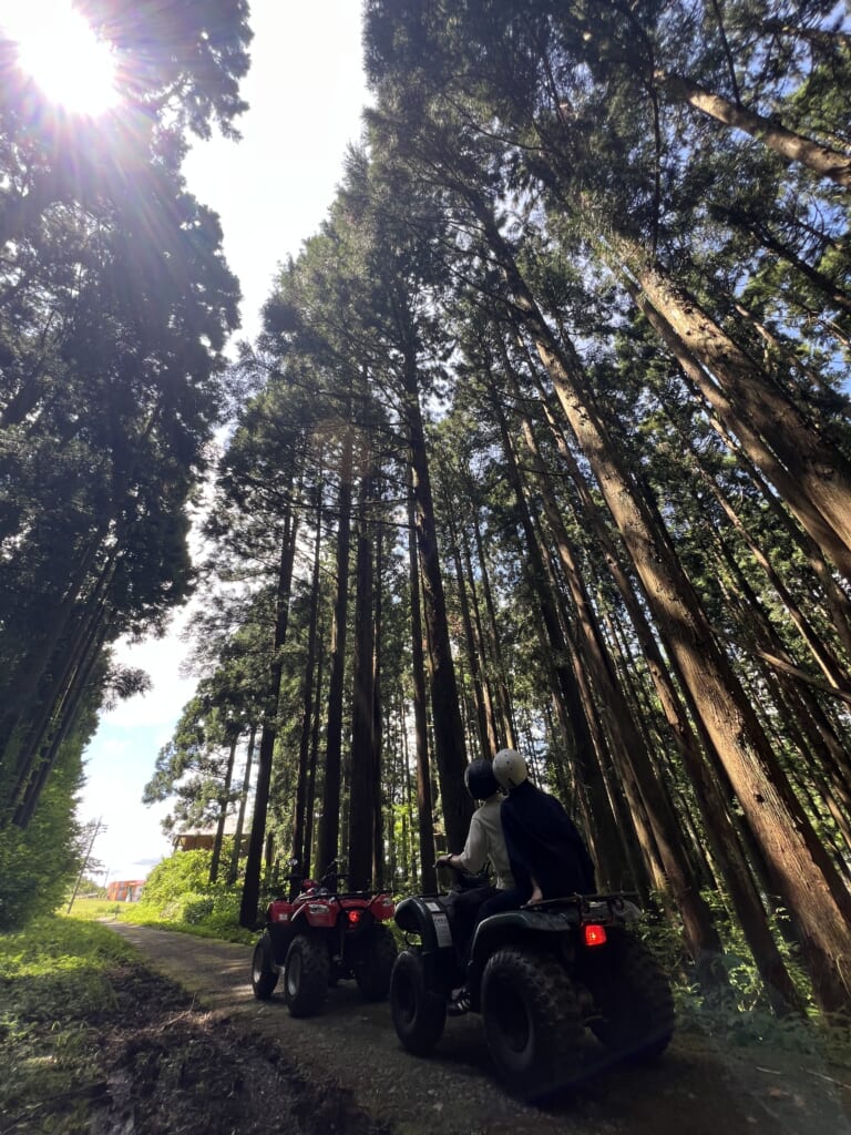 百間滑や龍神の滝への散策、森を駆け抜ける四輪バギーツアー、写真映えする大型ブランコなど、自然アクティビティも充実。