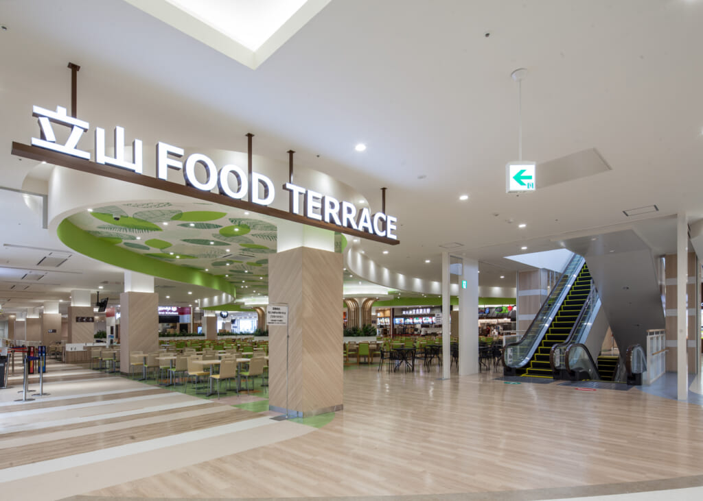 飲食店も多く、開放感あふれる「立山フードテラス」やレストラン街では、新鮮な寿司をはじめ、地元のソウルフードまでバラエティ豊かなグルメが楽しめます。カフェも豊富で、待ち合わせやひとり時間にもぴったりです。