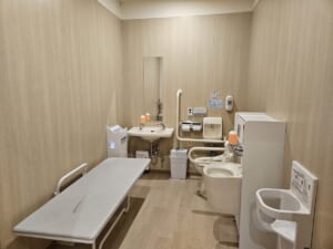 授乳室やキッズトイレ、ベビーカー・ステップカートの貸出に加え、フードテラスにはお子様用テーブル・いすやお座敷席も整い、ファミリーでも安心。また、一部の多目的トイレはオストメイト対応で、車いすや車いす用カートの設備も備わっています。