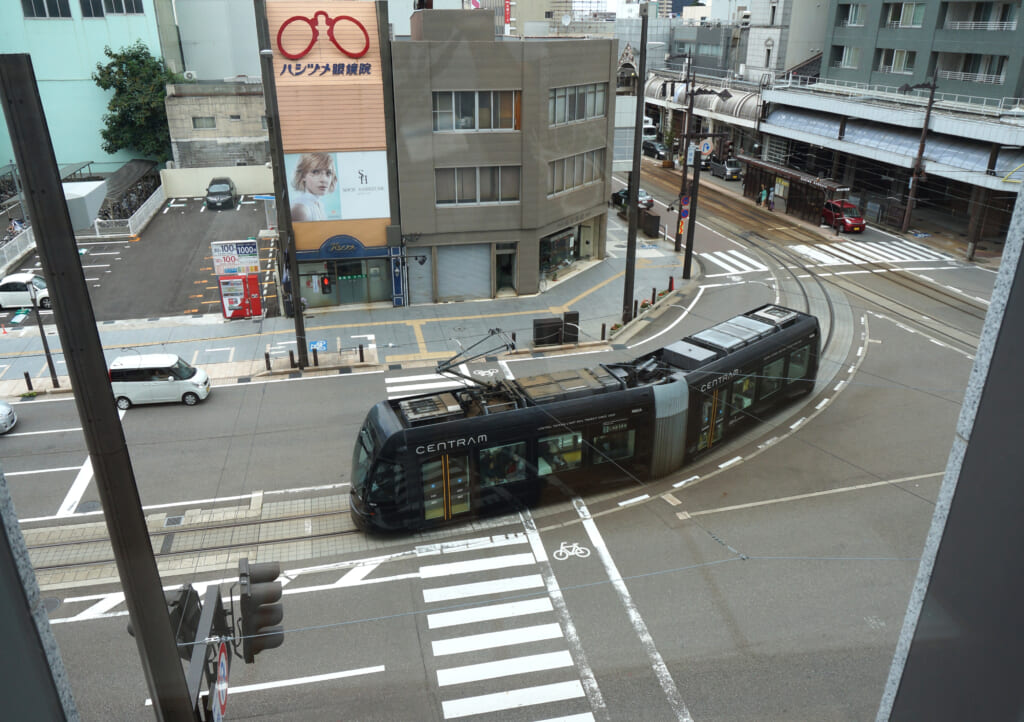 富山駅(南口)から「環状線(セントラム)」に乗車(約14分) →「グランドプラザ前」電停で下車、徒歩2分