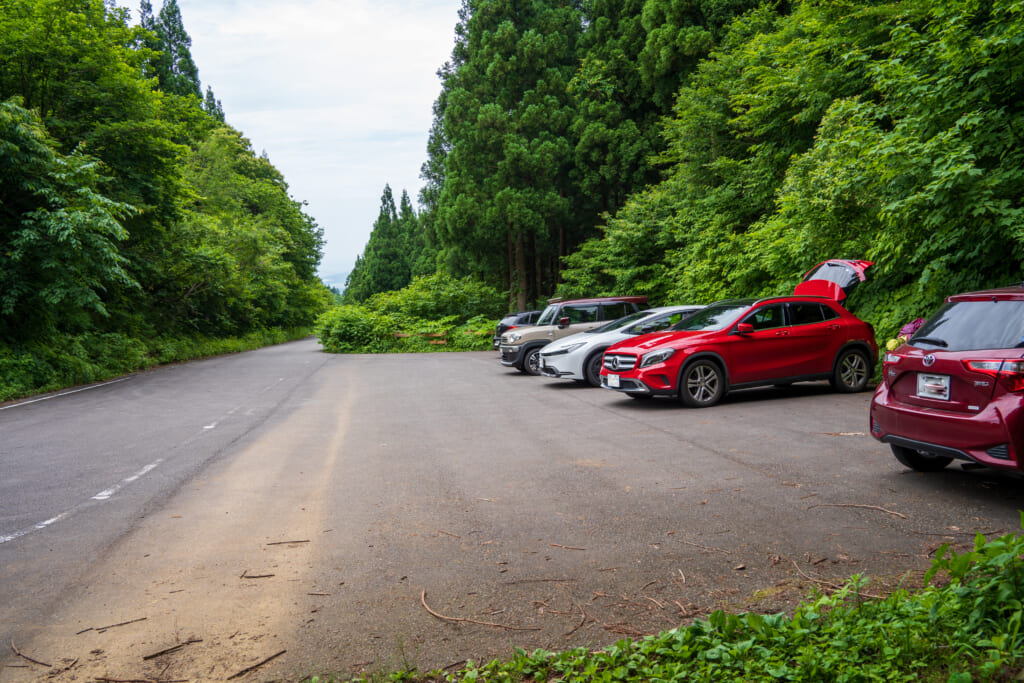 car 北陸自動車道富山ICから「赤とんぼ広場」まで車で約40分「赤とんぼ広場」から「二本杉登山口」まで車で5分