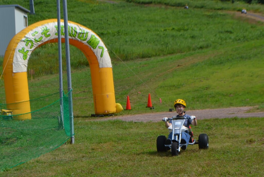 少しアクティブに楽しみたい日は、エンジンを使わずに山を駆け下りるマウンテンカートや、広々とした空間で楽しめるドローンパークへ。