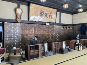 明治初期の薬店を復元した館内には、当時の製薬道具や百味箪笥、約180種の生薬原料、麝香鹿(ジャコウジカ)の標本まで並び、まるで時間旅行をしているような気分に。