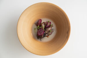 館内外に点在する現代アートや建築の美しさ、川景色に癒されながら、富山の旬にこだわった美食を堪能できます。