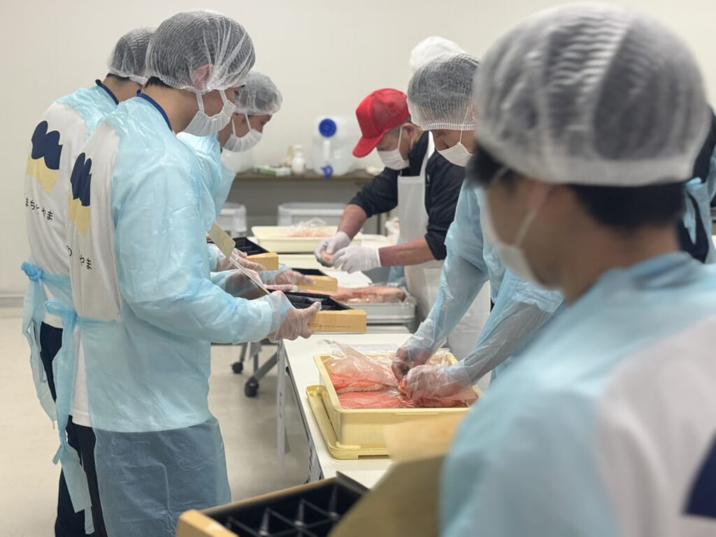 総勢200名分のます寿し食べ比べセットを、富山ます寿し協同組合と富山市役所職員が一丸となり制作しました。