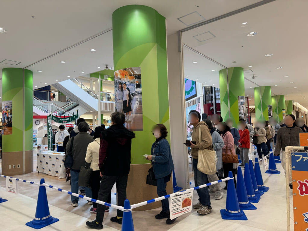 長テーブルが整然と並ぶショッピングセンターの会場。