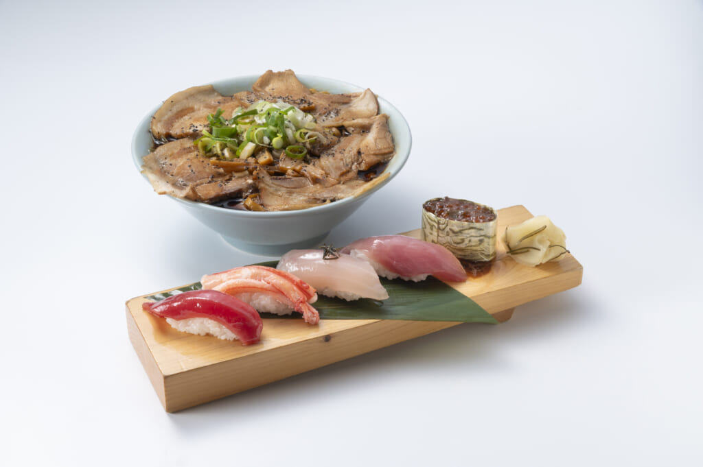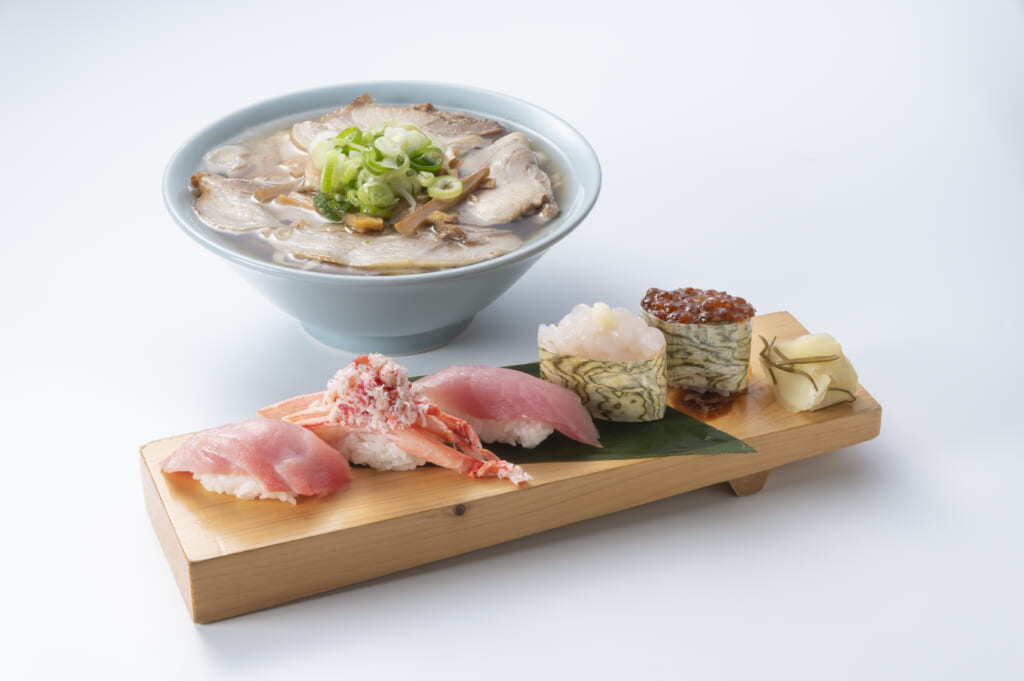 とやま鮨5貫 富山ブラックラーメンセット(2,500円)