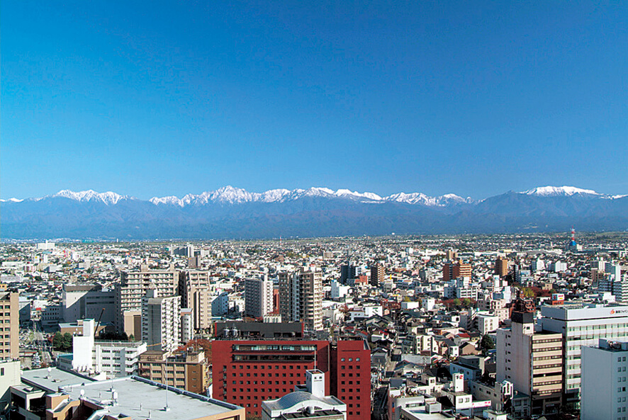 地上約70mから360度の大パノラマを楽しめる展望回廊。 市街地をぐるりと見渡せ、気象条件の良い日には雄大な立山連峰が一望できます。